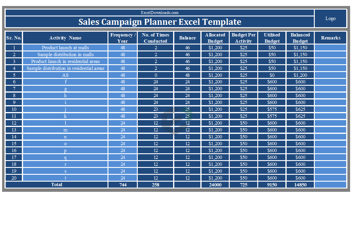 Download free excel template to plan various activities for your sales and marketing campaign. You