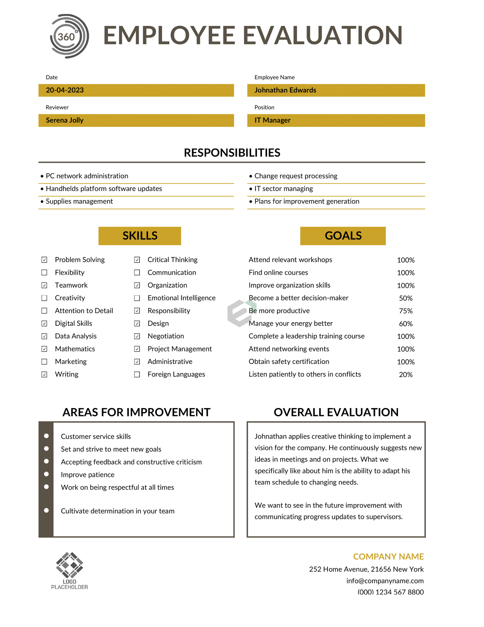 Download employee evaluation excel template which is useful for HR personnel, reporting managers and business leaders. This is a pre-designed format helpful for assessing the employee’s performance in a holistic approach. Furthermore, this template is printable, easy to customize and free to download.