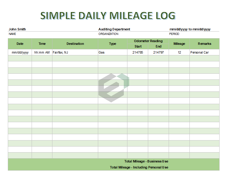 Download free excel template for capturing odometer readings for your business and personal vehicle tours