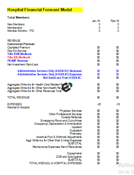 Download Financial forecast model excel format for Hospitals and Medical Centers. This template is useful
