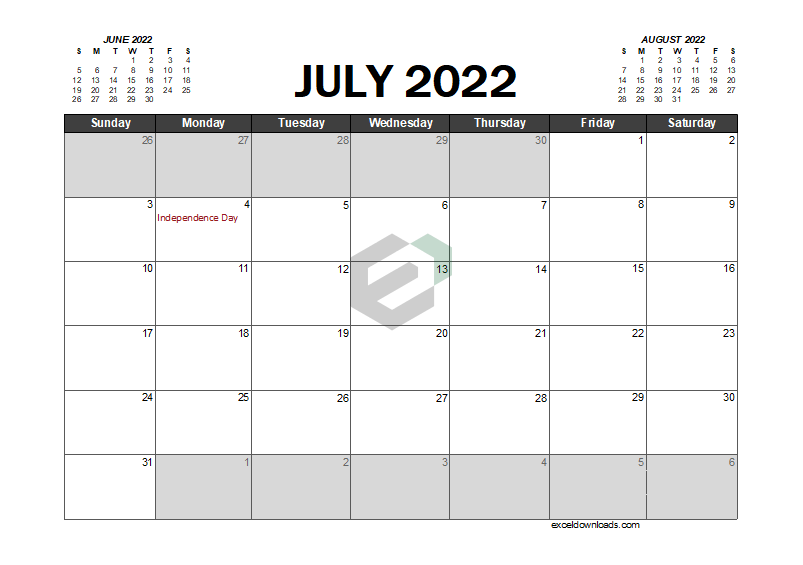 Download July 2022 calendar with holidays in printable format and excel format. This 2022 July calendar printable is available in